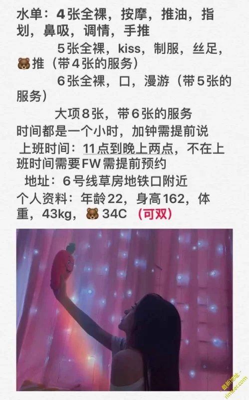 内容:本人在群里物色了好久,比较喜欢颜值加身材年轻的妹子,追后找了小七,第一次包夜说说感受吧提前和妹子聊好的,约好了时间,妹子聊天也很热情,一点也不高冷,当然也别在人家上班的时候老烦人家,当天晚上的客人也比较少,所以我也就提前去了,到达草房,妹子也是操控上楼,进去房间不大,不过装饰什么很好,欧式的装修,妹子正在洗澡卸妆什么的,出来后,身材很瘦不喜欢骨感的ly可能体验就不太好了,脸蛋没的说,确实很漂亮,不过我是去的包夜,所以她卸妆了,就看着没有很白吧,我觉得素颜这样真的很棒了,提前也给我准备了水果和水,很贴心。我也就脱衣服先洗澡了,她不太爱py我也就没让,不过出来还是很细心给我擦了身子,躺在床上,先是随便聊了会,本人年纪不大,所以也很聊得来,妹子也挺爱说,服务呢先是给我做个按摩,按了估计有半个多小时,我也比较吃力,最后妹子都开始给我踩背了,之后正面,妹子会的也不多,简单的几个小服务,之后就开始口了,口活的话中规中矩吧,技巧会的也不多,妹子说来北京还不到两个月,算是这的新人吧。妹子不让用手插下面,说不卫生,我吃个水果她都要让我刷个牙在亲亲。口了会我就带tt开始了,妹子下面很紧,第一下根本不好进去,不属于那种爱出水的,要稍微缓缓才可以,后来出水了也就顺畅了,妹子不爱在上边,什么姿势也不会,啥都要教,经验资深的Ly可以无限开发啊,干的时候妹子也不敢看你,是真的害羞,脸都红了,大概基本的几个姿势都用了一遍,妹子爽了也不敢叫,怕外边听见,房间隔音不太好,20多分钟出货,洗澡的时候妹子也进来给我洗了下下面,很细心,躺床上休息会,妹子也继续给我按摩,确实是舒服啊,很卖力的按摩,后面又继续来,不太爱出货了,妹子开始用润滑油给我按摩下面了,这个真心舒服,按摩前列腺,折腾了一个小时,后边就抱着睡觉了,妹子太瘦了,有点硌肉,第二天早上醒来又给我来了一炮,最后还给我点了外卖吃完我还走(期间她朋友找她来了,身材也很不错,不过带了牙套,脸蛋也可以的,喜欢可以去妹子微信看介绍)最后附几张妹子图片吧,大佬们不喜欢别喷老弟